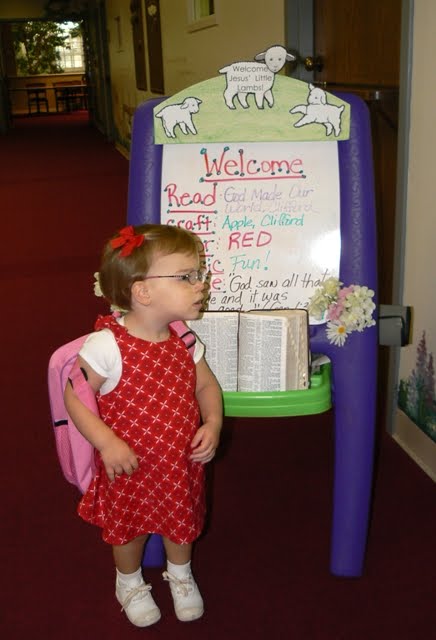 They are learning colors this semester and so the teachers asked that they wear the color they will be discussing. Memom whipped this up for us, thankfully.