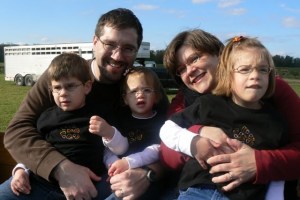 The hayride was hilarious. Our children were, of course, the floor show; partly because none of them understand the concept of volume control and partly because they are so darn adorable and say such precious things. Little sat for the duration of the ride with her hand on the leg of the gentleman to her left. At one point she said, “Sir, there are so many pumpkins. Do you see them?” He didn’t hear her which made me sad. While we sat and waited to begin, Bubba kept saying, “Momma, can you make the man go?” In the midst of the commotion we asked the gal across from us to take a photo.