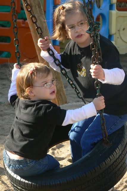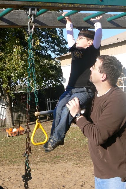 Next we got tickets for the hayride and then let the kids run free while we waited for the tractor and trailer to return. It will never cease to amaze me how much entertainment a child can get from a swing and some bars.