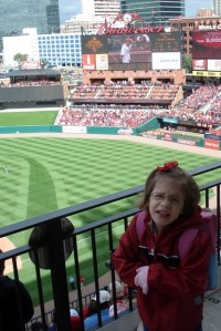 Anyway, I explained to her that she would get to see the Cardinals play and that Fred Bird would be there too. She responded, “And he won’t talk.” True.