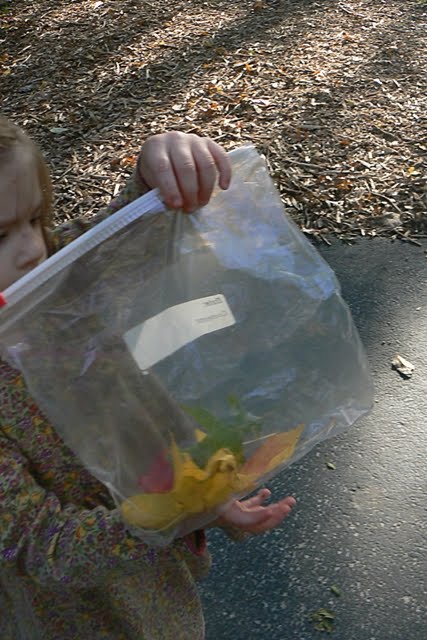 I finally coerced the kids to gather a few of the fallen treasures (I was planning for us to iron them between wax paper but lost the joy QUICKLY)