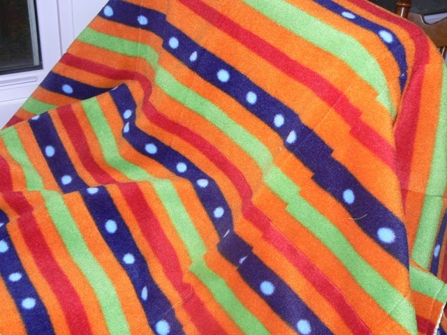 The blanket is finished but now I have to sew and fill the bean bags that add the weight. It would have been finished awhile back if not for a tooth pillow, Halloween costumes, 175 candy bars to wrap for a church event, etc. Maybe by this weekend. . .