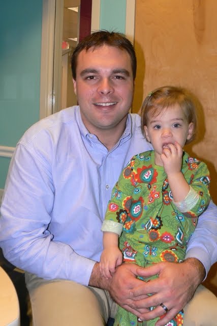 KB went for her first dentist visit on Monday. She acted like a real pro. Not only did she chat with everyone in her path, she squealed over her new toothbrush, asked if she could brush her teeth and gave appropriate approving responses when Dr. Dan showed us photos of his little boy. She has 16 teeth and her two year molars are beginning to bulge.