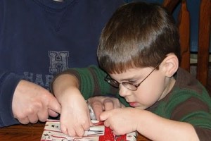Linda took the kids to McDonalds for lunch and an hour in the Playland and then on to Walmart where Bubba put EVERY car he liked into the buggy. To hear Linda tell the story is classic. She shrugged her shoulders and let him do it. Then she explained that they could only choose TWO. They went and laid everything out on the floor in the aisle and he walked up and down and chose two cars for the mystery five year old. He then put the rest of the cars back on the shelf. (Insert deep sigh of approval and head shake just because that might never really happen so easily again.) After a “no” to a new computer and encouragement from Aunt Linda to choose a doll and an outfit (for the doll), the group came back to our house to wrap the gifts together.