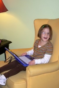 Little truly is one happy looking camper even if the computer isn't greeeeeeeeeen! It's hard to believe she's turning 6.