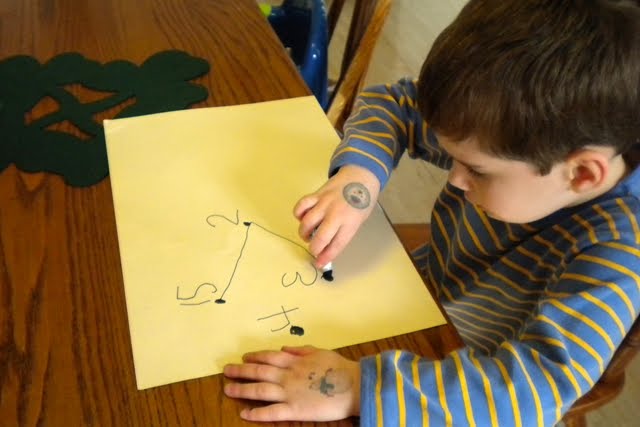 If necessity is the mother of invention then impatience is the brother! Tired of waiting for his mamma to get his dot-to-dot book, Bubba drew his own.