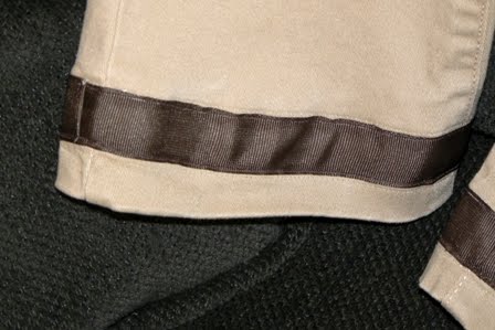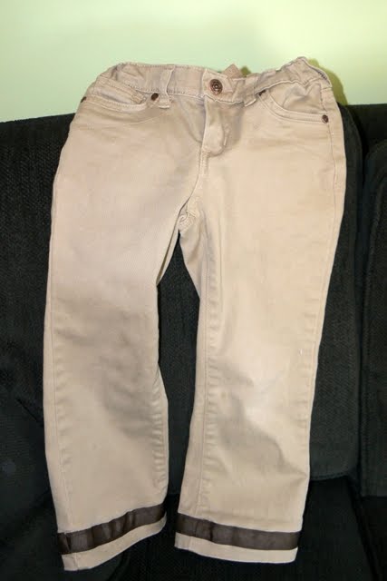 Anyway, Little just keeps growing. I got her a couple pairs of pants at the beginning of winter and hemmed them – leaving quite a hem since the elastic in the waist was pulled so tight I knew she’d wear these babies for ages. Here we are five months later and the pants were at her ankles and the elastic was let out one notch. The markings from the hem were awful so I did a little doctoring and tah-dah. . . a couple more months of wear!