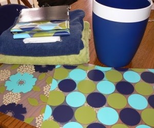 So THAT'S what the placemats were for–so very clever! The bathroom looks great! I love the polka-dots :).