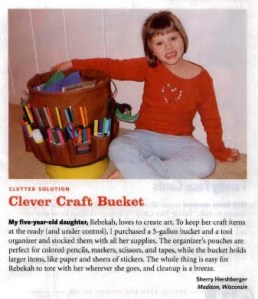 We have the same bucket idea only Boo keeps his tools in it.