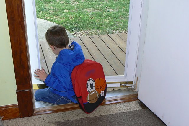 I told Bubba he was NOT to go outside; it was cold, there was a bit of time before the bus was to arrive, and I wasn’t in a place to go with him.