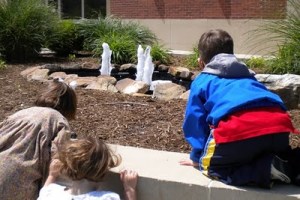 I parked so far away from the front door it was comical. Benefit? There was no traffic to compete with and safety was pretty much guaranteed. Once we got to the sidewalk I was pounced upon by one wanting my signature on a petition; the children were, thankfully, entertained by this . . . fountain? Spurting water thingy?