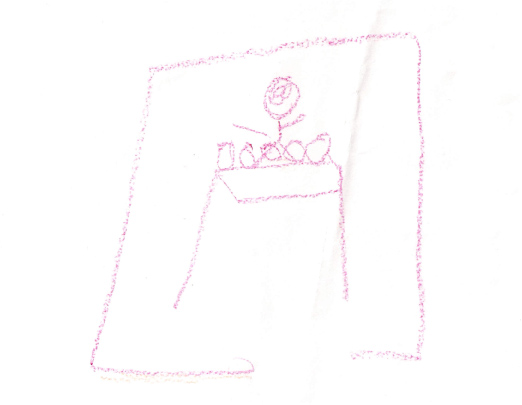 When I asked him what it is, he responded, “My picture.” (Very literal!) I changed my question and asked, “What did you draw in your picture?” He said, “It’s a merchant at his table looking at his pearls.” You can see that, right?