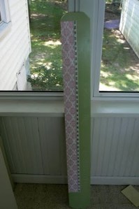 This is a project that has been waiting for me to finish it for some time now. I would just look at it and walk away. All that was left to do was Modge Podge KB’s name, stats, and the measuring tape to the board. THAT WAS IT.