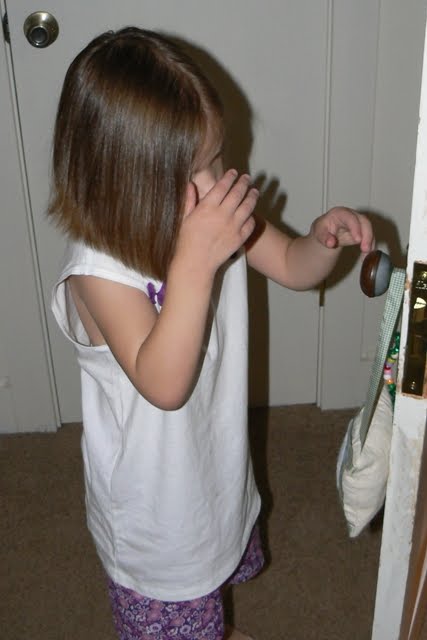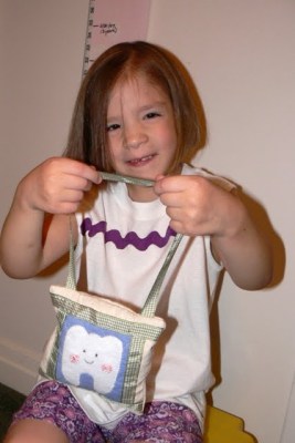 Hung the pillow on the door knob (we wouldn’t want the tooth fairy to wake Little up any earlier):
