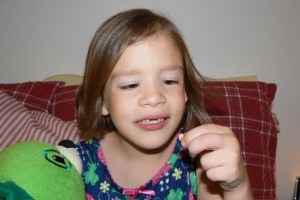 How exciting!!! She looks adorable with missing teeth :). Make sure you get lots of pictures before those new big girl teeth come in. I love hearing those lisps, too.