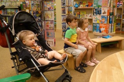 I adore this picture. CB really loves books already and my two could listen to stories for hours. I realize it looks like no one else attended, but the truth is they arrived after the reading was done and April asked the lady to read it again. And the lady did. She read If You Give a Mouse a Cookie for Little, Bubba, and CB! Sweet.