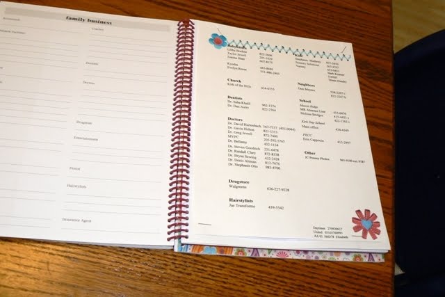 Amy in Chicago, a friend and former roommate, sent a message on Facebook to ask me some questions about why I love this calendar and I wrote back my answer. She ran out and bought a calendar and then wrote to ask if I recopied the phone numbers every year or just typed a document I could update as needed and stapled it into my calendar!!! SERIOUSLY? What a great idea, Amy.