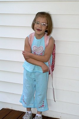 Little was SO excited about her “first day of first grade”. She has the same teacher’s aid as last year and they have picked right up where they left off. Here she is looking adorable for her first day: