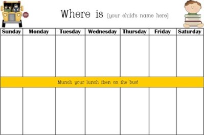 You heard right: Bubba is going to two schools this Fall. We decided the structure, plan, and challenge would be just what he needed and enrolled him in the 4 year old program at our church’s day school. He’ll go to Kirk Day M, W, F mornings and to Parkway M-TH afternoons. It’s a lot to keep up with, so I created this to help: