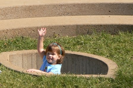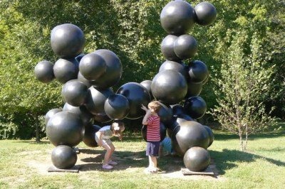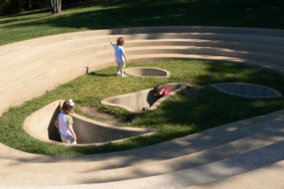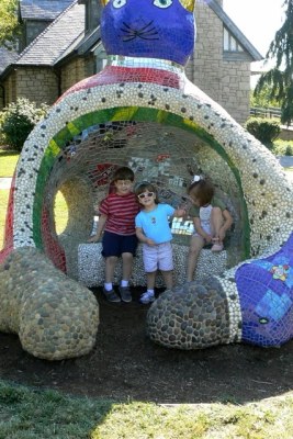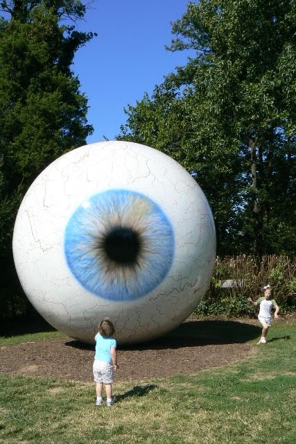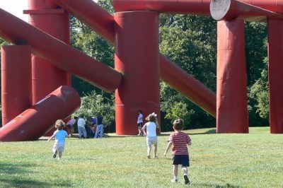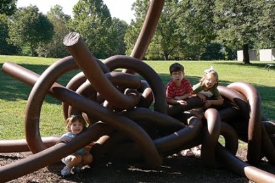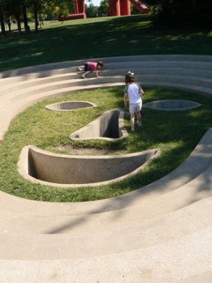 Titled Face of Earth #3, the artist Vito Acconci had a bit of an attitude in my mind.  The description read, in part, “this piece proposes that a bland, easy to understand, integrating face is what the general public wants in art.”  Well, it’s what my kids wanted in art.  They “got” this one and loved it. They climbed in and out of those facial features for ages . .