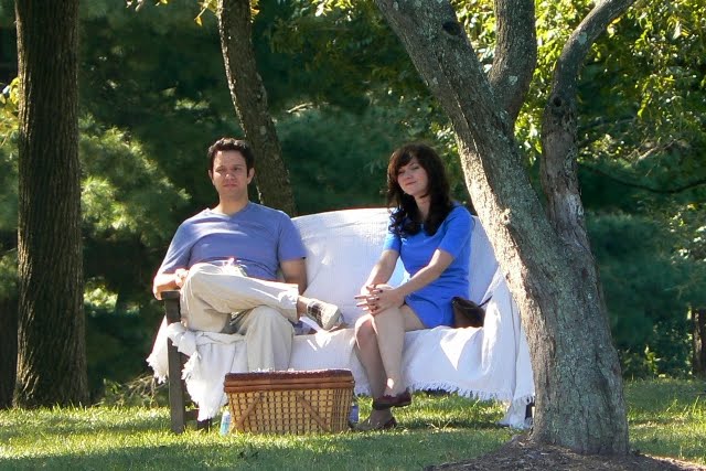“Here’s to you, picnicking in the park couple.  You sit on your sheet covered bench enjoying the brisk morning air (wish I’d brought a jacket) while sipping an undisclosed beverage and showcasing your wedding gift picnic basket (you couldn’t return it).  Your presence mocks the families passing by and you like it.  (we don’t have children!) So here’s to you picnicking in the park couple.  Stay clean while we head to the food court. (The picnicking in the park coooooooupllllllle.)