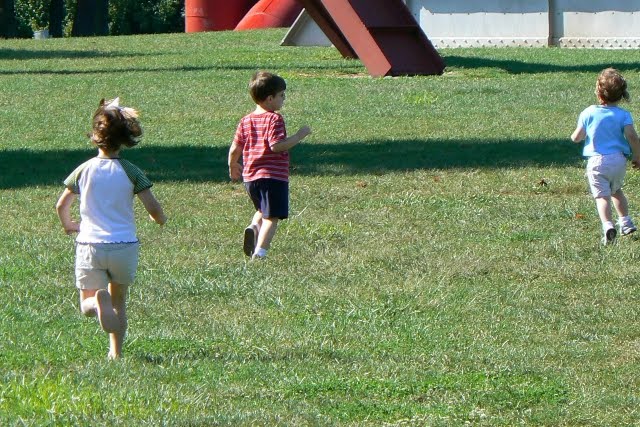 The distance between sculptures was perfect for running.  The kids would take off down a hill. . .