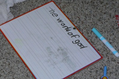 I am pretty sure the song said, “The Word of God”, but Bubs wrote what he heard. He does that. He lays on the floor and writes the words of songs or books.