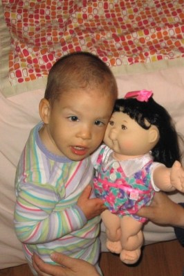 Kasey – the Cabbage Patch doll who has sacrificed an entire head of hair so that Little could keep her own – is out of hair.  We got Little a new doll (with red hair, just like she requested) but she won’t sleep with her.  I made her leave Naomi (the doll was named after the new cousin) on the bed tonight and she screamed as if she were being terrorized.  As soon as I made it to the bottom of the stairs I heard a noise that I am pretty sure was Naomi hitting the floor.