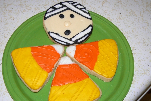 Honey came home from work on Friday with a “big surprise” for everyone. He called us into the kitchen and took four cookies out of a bakery bag. There were three candy corn cookies for the children and the fourth was, “for the mummy”. (that’s a quote folks. Honey is a goofball. But a darling and sweet one, wouldn’t you agree?)