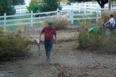 There was no running through leaves.  He knew about the party and I think he got out there early to clear it for us.  It was nice.