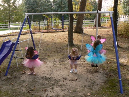 Once everyone was dressed we headed outside and the girls went straight to the swing set.  It was as fun to watch as I had imagined.