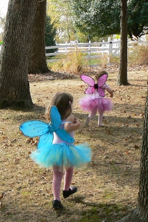 When KB and I talked about her party she told me the games she wanted to play.  She wanted to play “Hide and Seek games, and tag, and chase.”  A real lady that one! Well, she got her wish and a spontaneous game of tag broke out with M-fairy and her.
