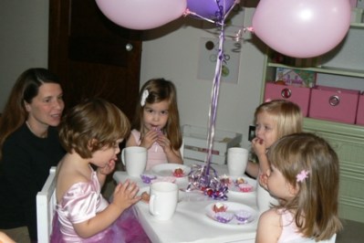 First guests arrived at 9:30AM.  Our friends are a one car family and it turned out daddy had to go into work early.  I saw them drive up and I giggled.  I let out a long breath and just relaxed.  See, Honey wasn’t home with the birthday girl; M-fairy didn’t understand what she was doing at our house with no KB.