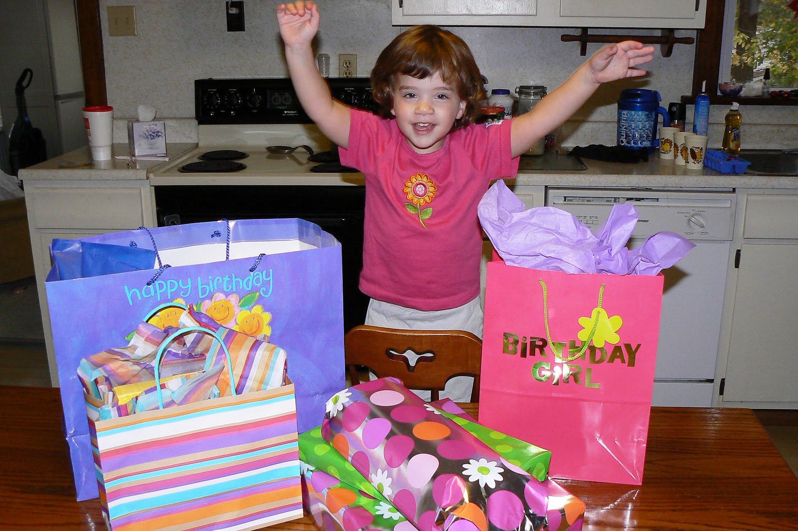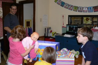 The family went to church, ate lunch, had naps like usual.  When KB woke up there were gifts on the table: