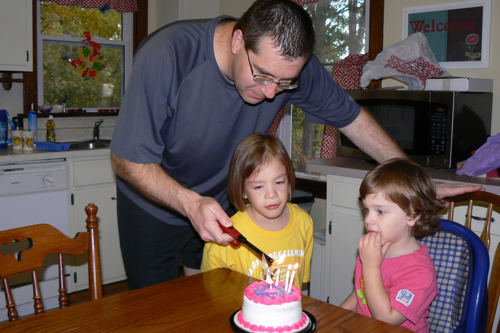 See the laptop sitting on the blue hutch? That’s Memom and Pop on the screen.  They watch the opening of gifts and blowing out of candles from Birmingham via Skype.  Gotta love technology.