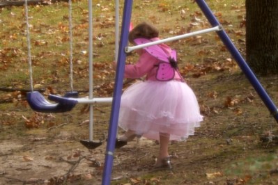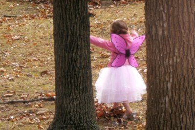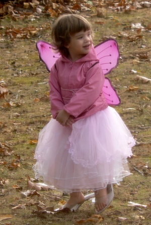What a cute pixie! She's already learned… shoes can make an outfit, and so can wings!