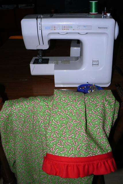 Since I had already made plans to make the kiddos matching jammies, I just purposed to buy material with candy canes on them.  (I cut KB’s just a bit short so she gets a little red ruffle.)  I bought the fabric in September – no lie.  I made the jammies today and yesterday.  How’s THAT for planning ahead and procrastinating meeting in a major mash up.  Would that be called procrastinating ahead?
