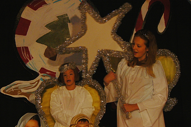 Tonight was the Kirk Kids’ performance of Candy Cane Lane.  It was super and fun to watch.  Our Little was an angel during the nativity scene and that beautiful gal on the right is Jen; she shadowed Little all semester and took great care of her.  We are so thankful for the way God provides for our family and cares for our special little ones.
