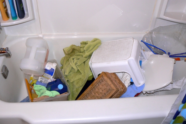 This picture shows all the soaking wet towels and such that Honey tossed into the tub while cleaning up after our little angels.