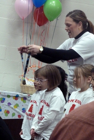 Every child had a line to say.  I only heard three or four.  Little’s was, “It’s your turn.”  She was looking around the room at the balloons and three of her classmates elbowed her while three others on the back row loudly whispered, “Little.”  She said her bit and went back to looking at balloons.  It’s at times like that I wonder what is going through her head. . . if anything.