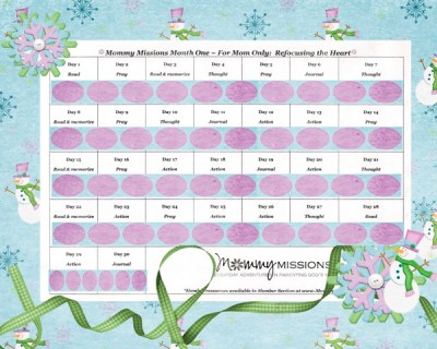 Please don’t ask me how I found out about Mommy Missions – I can’t remember.  Still, I did.  I was intrigued by the concept but unsure about the money.  Also, my pride was kicking in and thinking, “I have the training and skills to plan for my children’s spiritual growth.  I don’t need a calendar and preprinted scripture memory.  Nor do I need encouraging articles, for heaven’s sake.  It’s just something else.”