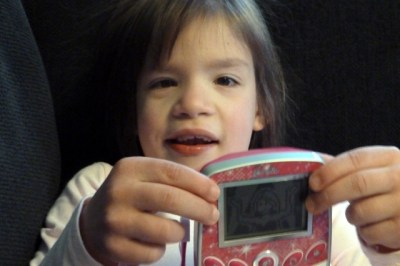 Can you see Barbie on the screen.  She is dancing.  Little loves it and wanted me to take a picture.  That’s not the part I dislike.  It’s that the games you play are things like. . . Where do you want to go? Who will you take? What will you wear? The matching game is focused on fashion – match the shoes, match the bathing suits, etc.  She has learned the words cool, awesome, and . . . there is one other I can’t remember.  Nothing gross or overtly horrible, just not the stuff I would readily hand my daughter to focus on for large pockets of time each day.