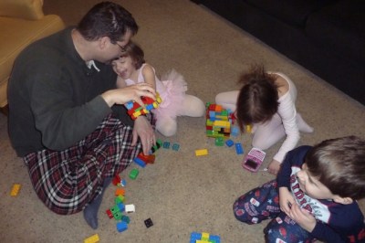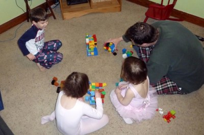 You know we had been told we were going to experience a blizzard. I felt like I should make a tshirt: I was promised a blizzard and all I got was these lousy 3 inches of ice. So, basic consensus was that we were stuck in the house for the day. We hadn’t even seen a plow go by, so w brought out the Legos. The kids and I built condos while Honey put together an amazing vehicle. Boys and their toys, right?