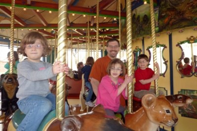 We arrived at the beginning of free hour. Admission to our zoo is always free but during the first hour they are open kids can ride the carousel for free and enter the petting zoo for free. We normally go straight for the petting zoo but not this time. Living on the edge, we made our way to the carousel for our first ride there ever. It was just like other carousels. Seriously. What made it special? The kids all got to sit beside each other. I got a good photo. KB was so very into it. 3 is a fun age, I think.