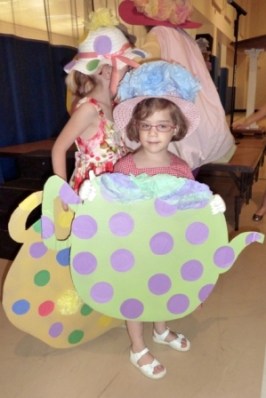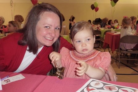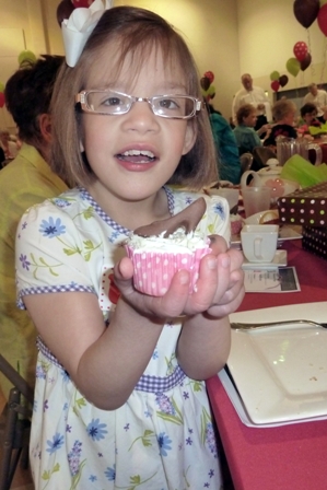 KB was a part of the entertainment – she was a tea pot.  My friend sent me video (our table was at a terrible angle) but I can’t get it to down load.  Here’s a couple pictures to give the idea.  Basically, there were six 3 year olds who sang “i’m a little teapot” and there were 200+ women who said, “awwwww”.  Good times.