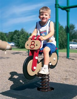 The next week found us visiting V. Park.  I sat and watched my three year old approach two boys who were sitting on a rocking motorcycle thing like this one (but the one at our park was bigger and had a side car on it).