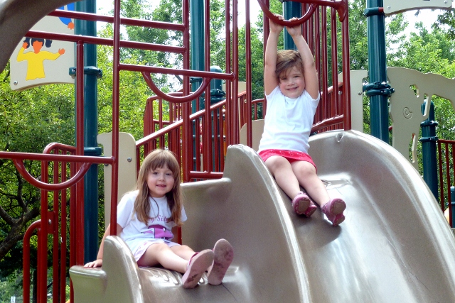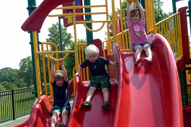 The next week we were joined by our Luthin friends and we faced the heat at DP Park.  There’s great playground equipment for climbing, running, and sliding.