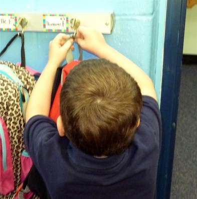 So, I got to see him hang up his backpack like a pro. .