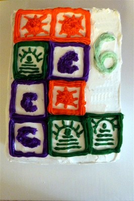 What a clever birthday cake idea. I have never played (or even heard of Mayan Puzzle), but my interest is piqued. I think the cake looks great and I am sure he loved it! Sounds like 6 is a great year–with both gum AND Lion, the Witch, and the Wardrobe.