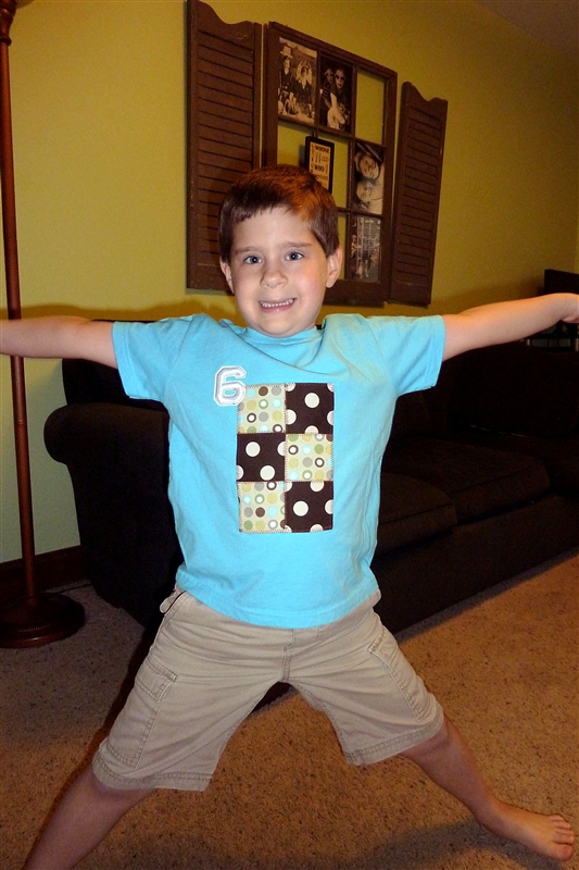 One of my best friends has politely pointed out that Bubba’s birthday is glaringly absent from this blog. I forgot. It’s very indicative of how his birthday went. I didn’t forget the day or the shirt, but I just wasn’t as aware as usual and the day just went by with minimal fanfare. My little boy turned six and it was just so-so. Still, I tell you about it, cause the shirt was cute and the cake needs the opportunity to end up on “Cake Wrecks”.